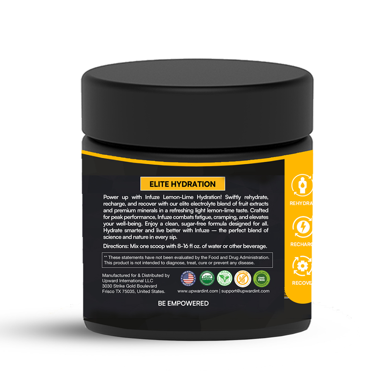 Power up with Infuze Lemon-Lime Hydration! Swiftly rehydrate, recharge, and recover with our elite electrolyte blend of fruit extracts and premium minerals in a refreshing light lemon-lime taste. Crafted for peak performance, Infuze combats fatigue, cramping, and elevates your well-being. Enjoy a clean, sugar-free formula designed for all. Hydrate smarter and live better with Infuze – the perfect blend of science and nature in every sip.